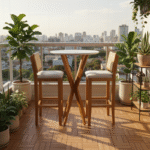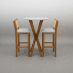 A mesa bistrô está ficando cada vez mais presente em ambientes residenciais, é um móvel versátil que pode ser usado em diversos ambientes da sua casa integrado a decoração, como complemento do bar, no quarto para fazer pequenas refeições, na varanda, nas sacadas de apartamentos, áreas gourmet e até mesmo para substituir a mesa de jantar em ambientes menores. Estrutura em madeira maciça Eucalipto, tampo Off White em Laca com vidro de 3mm.