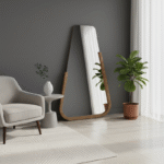 Espelho 4mm modelado prata, meio contorno em moldura. Versão de chão e de parede.